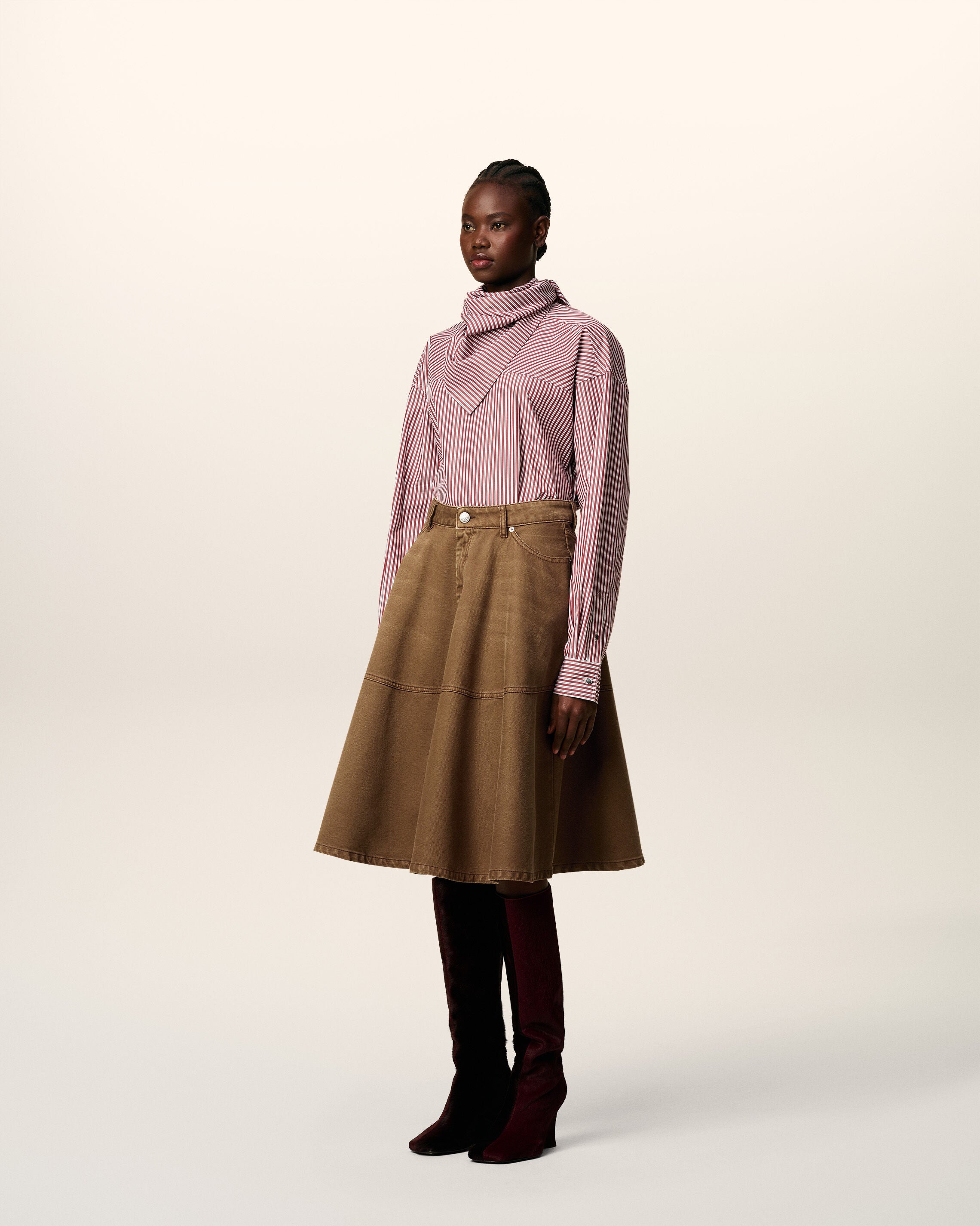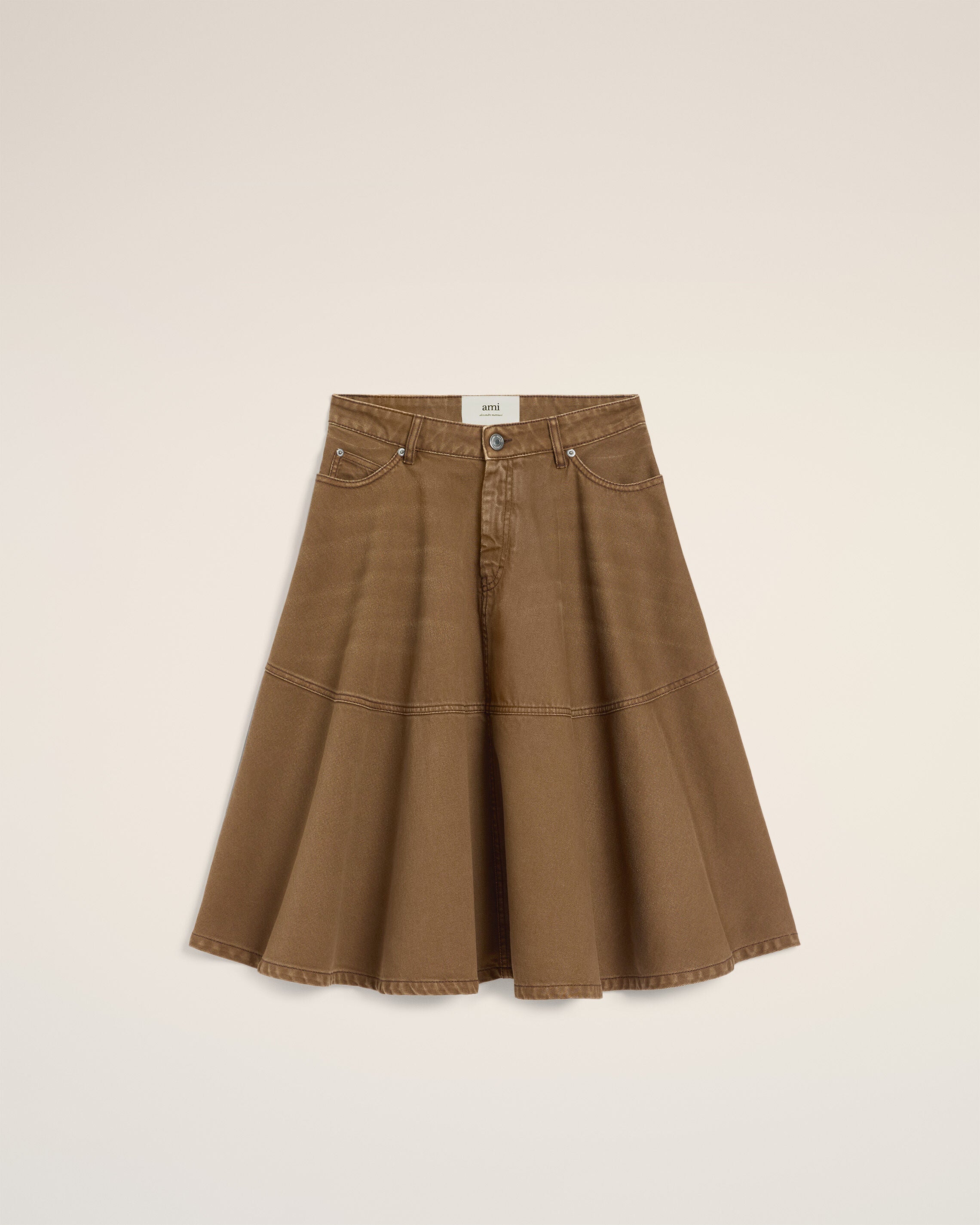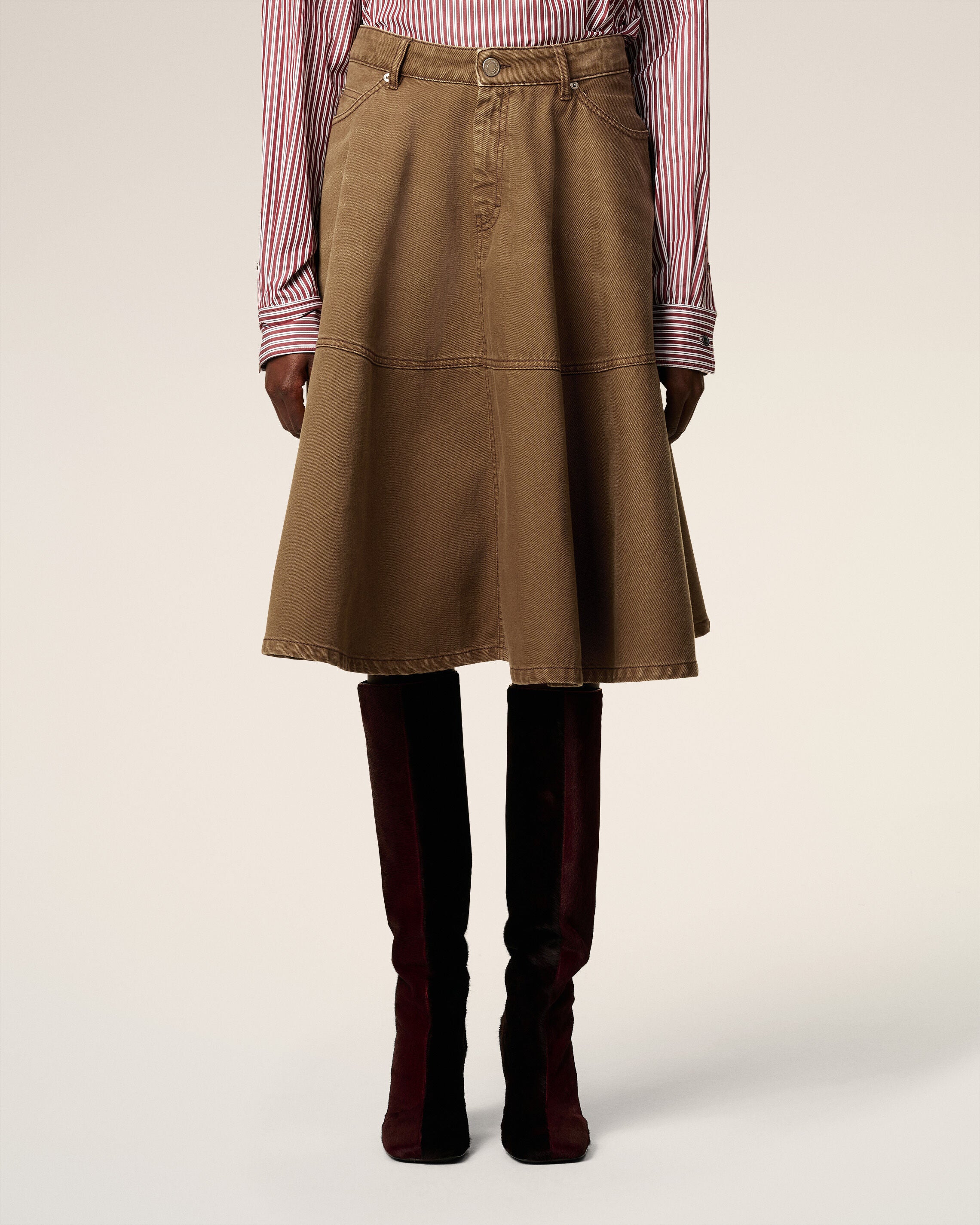 Falda corola midi de tafetán marrón
