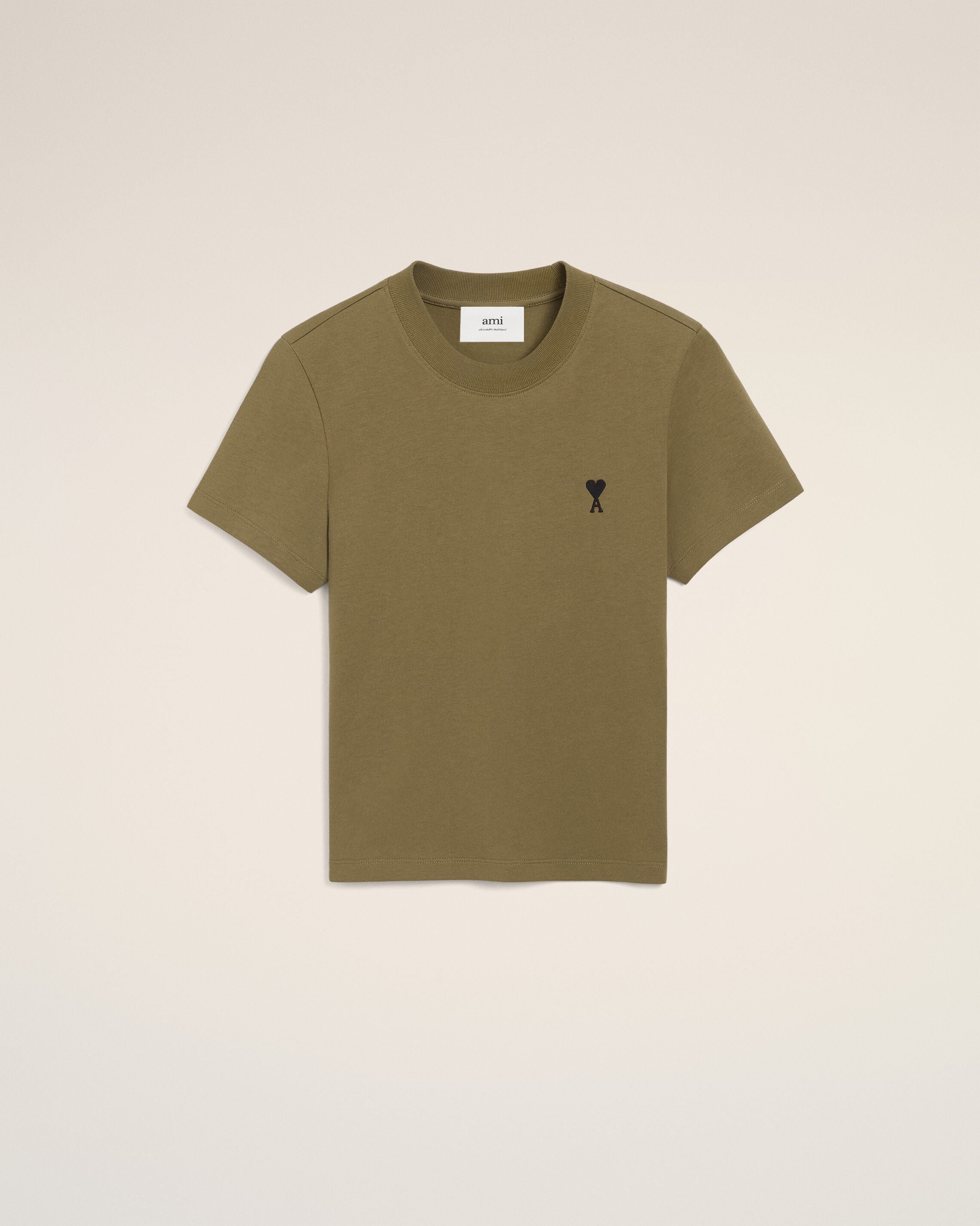 Bordado "ami" tono sobre tono bajo el cuello de la parte trasera