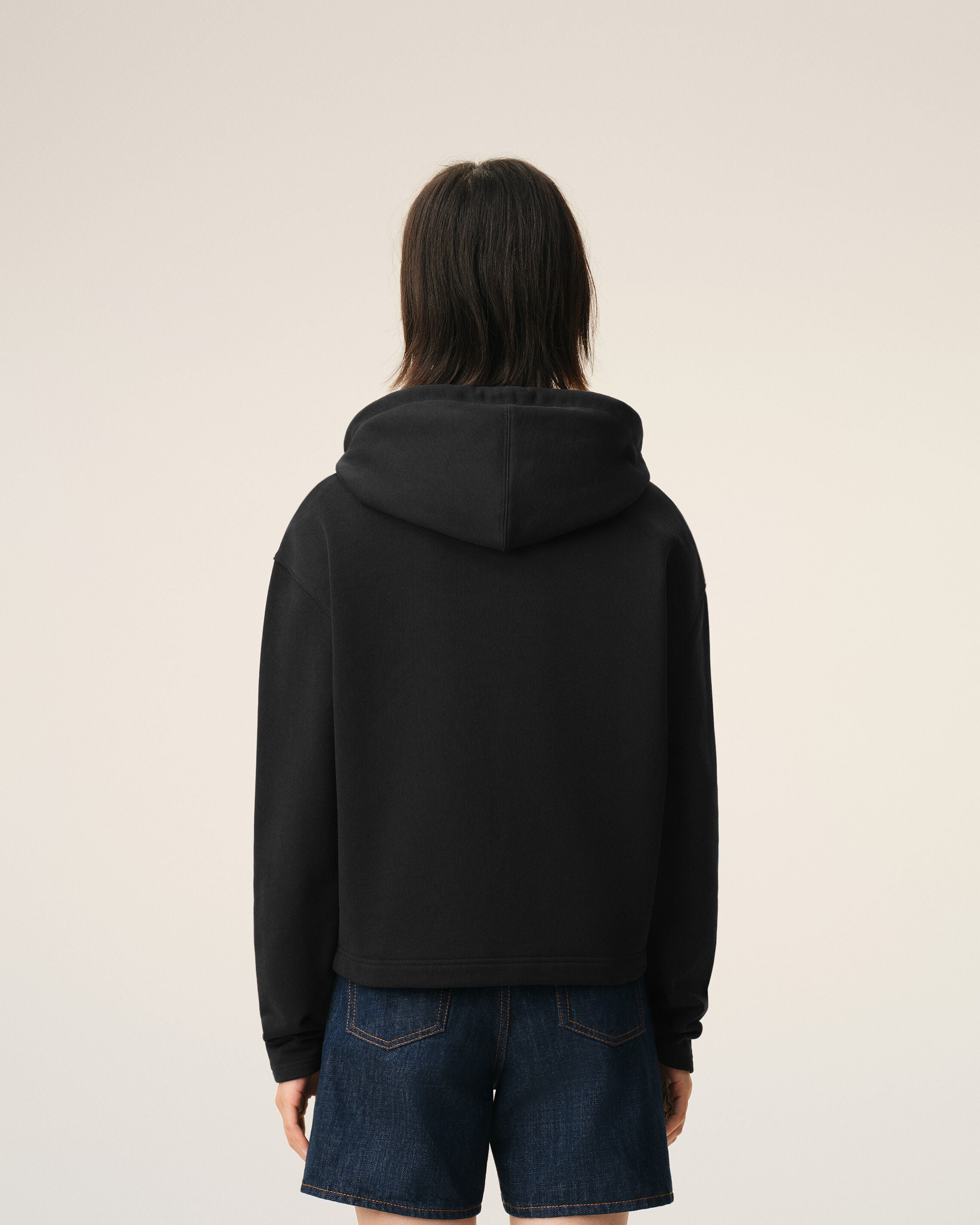 Sudadera con capucha y cremallera Ami de Cœur de algodón negro