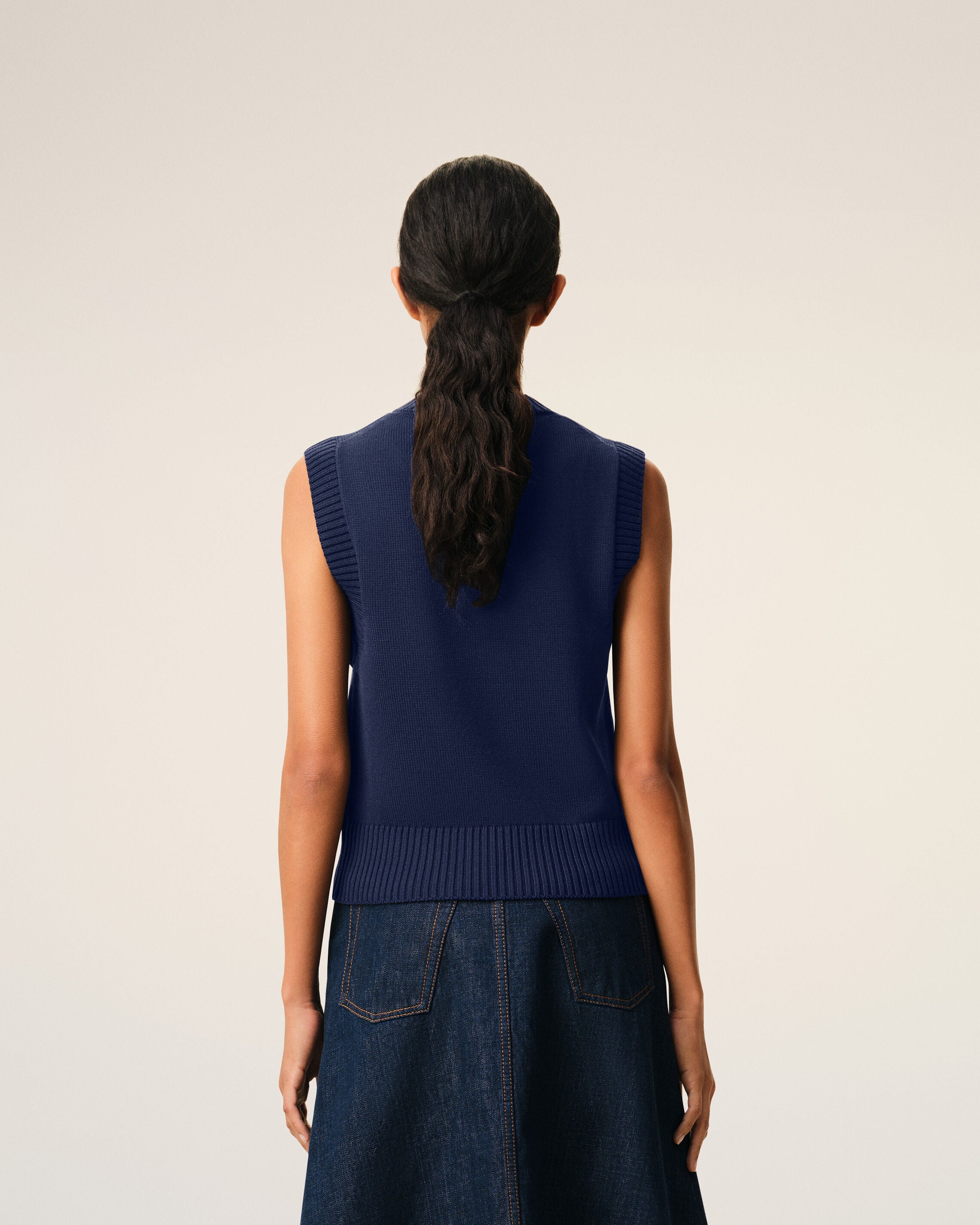 Pull Bleu Sans Manches Ami De Coeur en Laine Et Coton