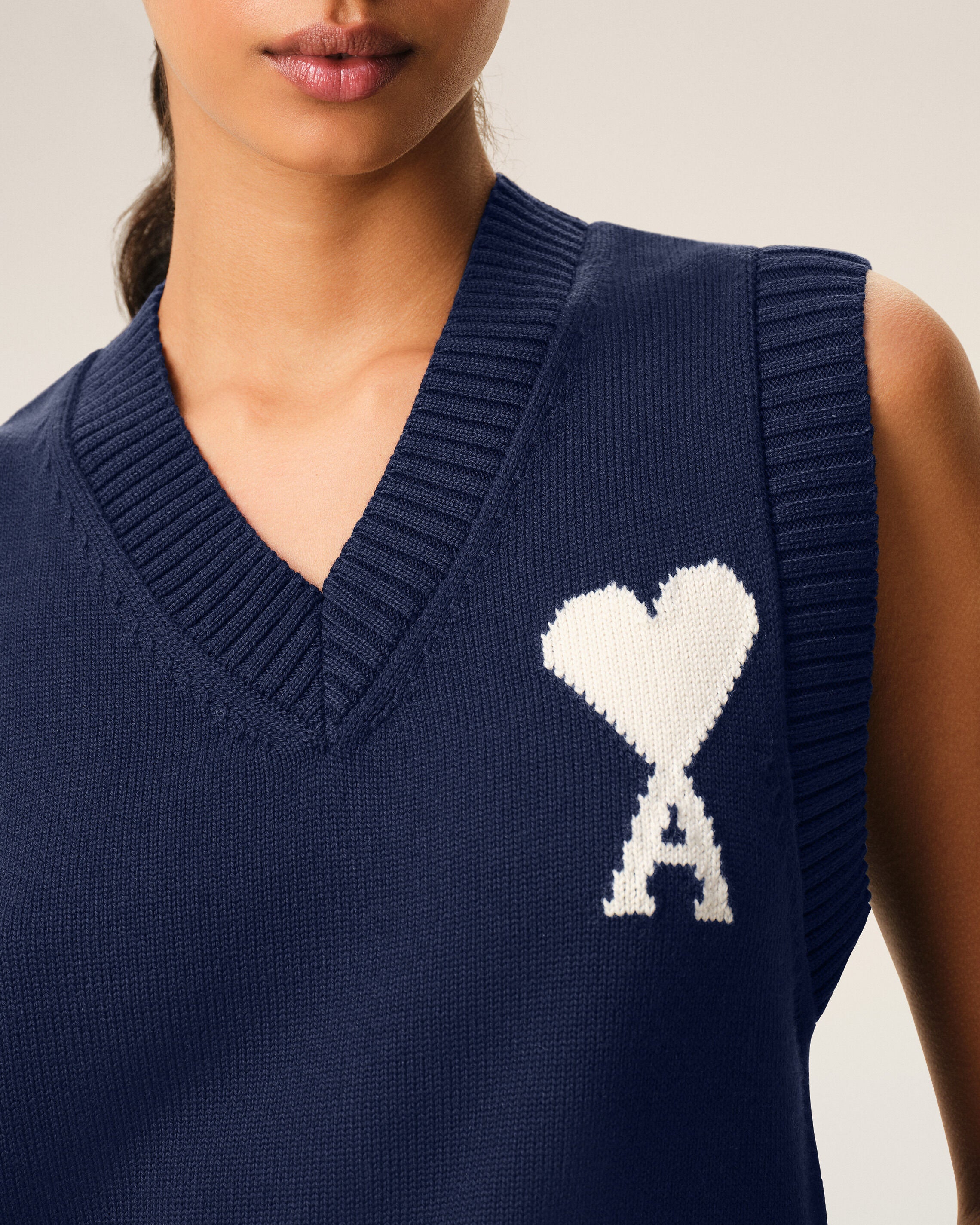 Logo Ami de Coeur rouge tricoté en intarsia sur la poitrine