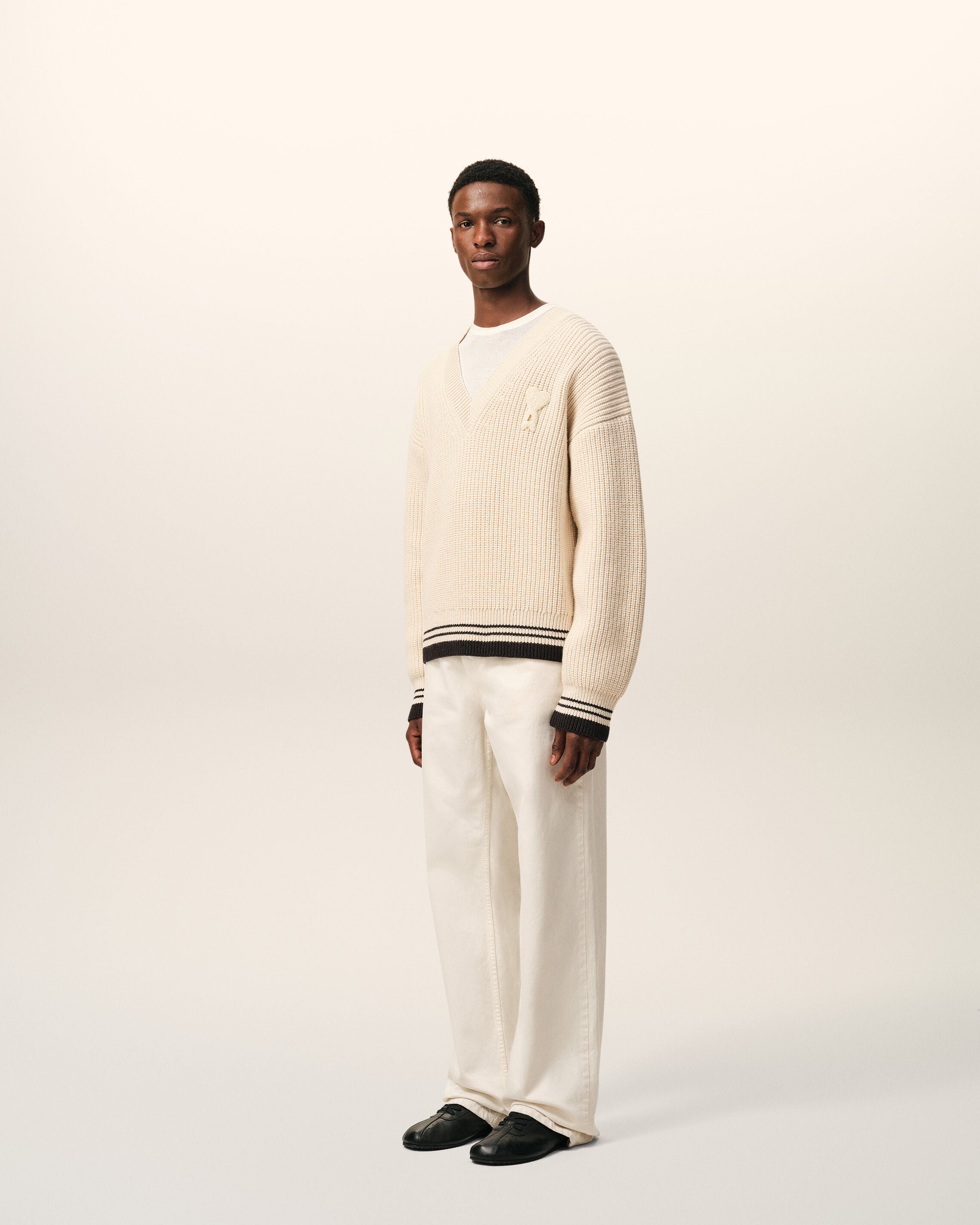 Pull Blanc Col V Ami De Coeur en Laine Côtelée