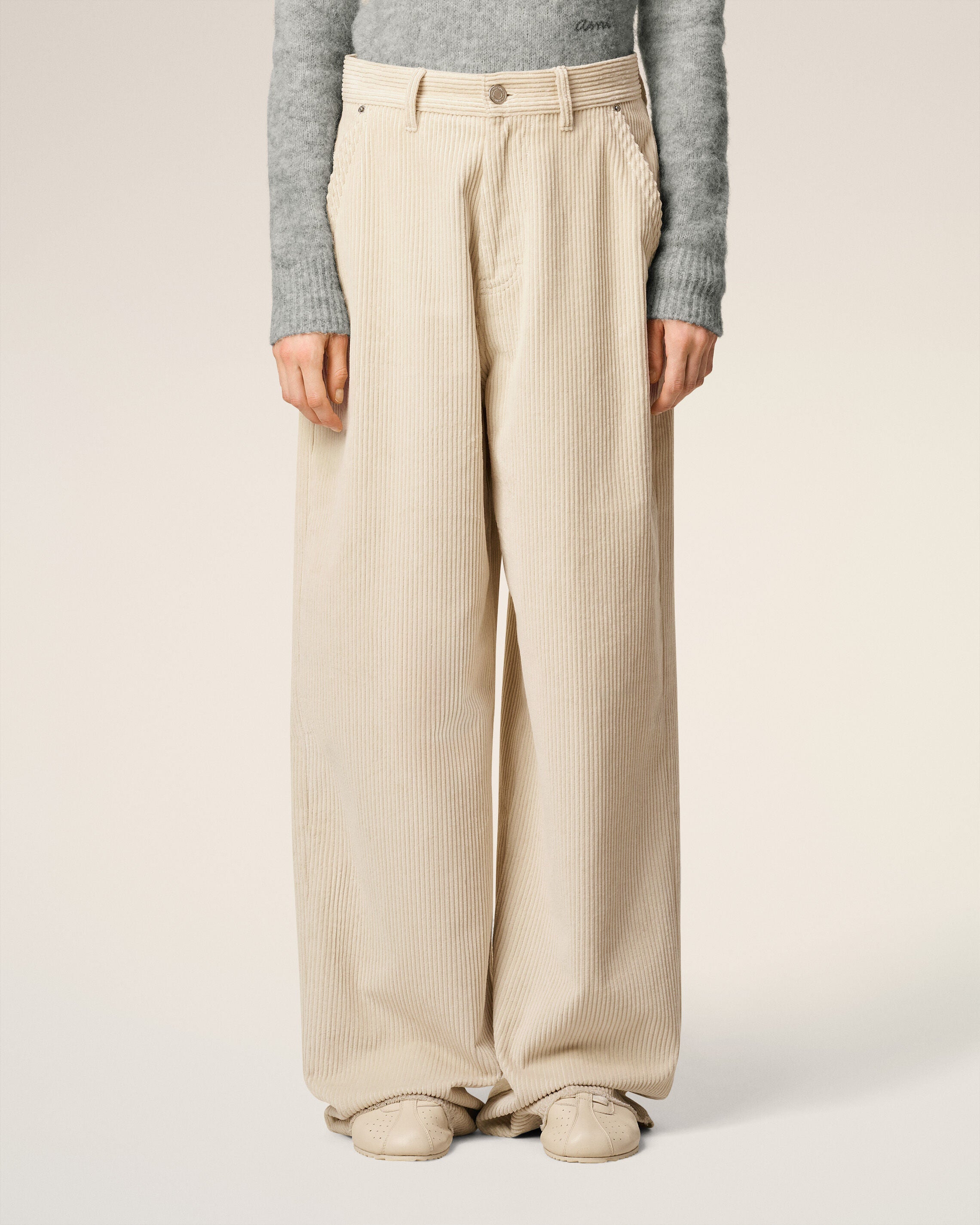 Pantaloni taglio ampio in lana bianca