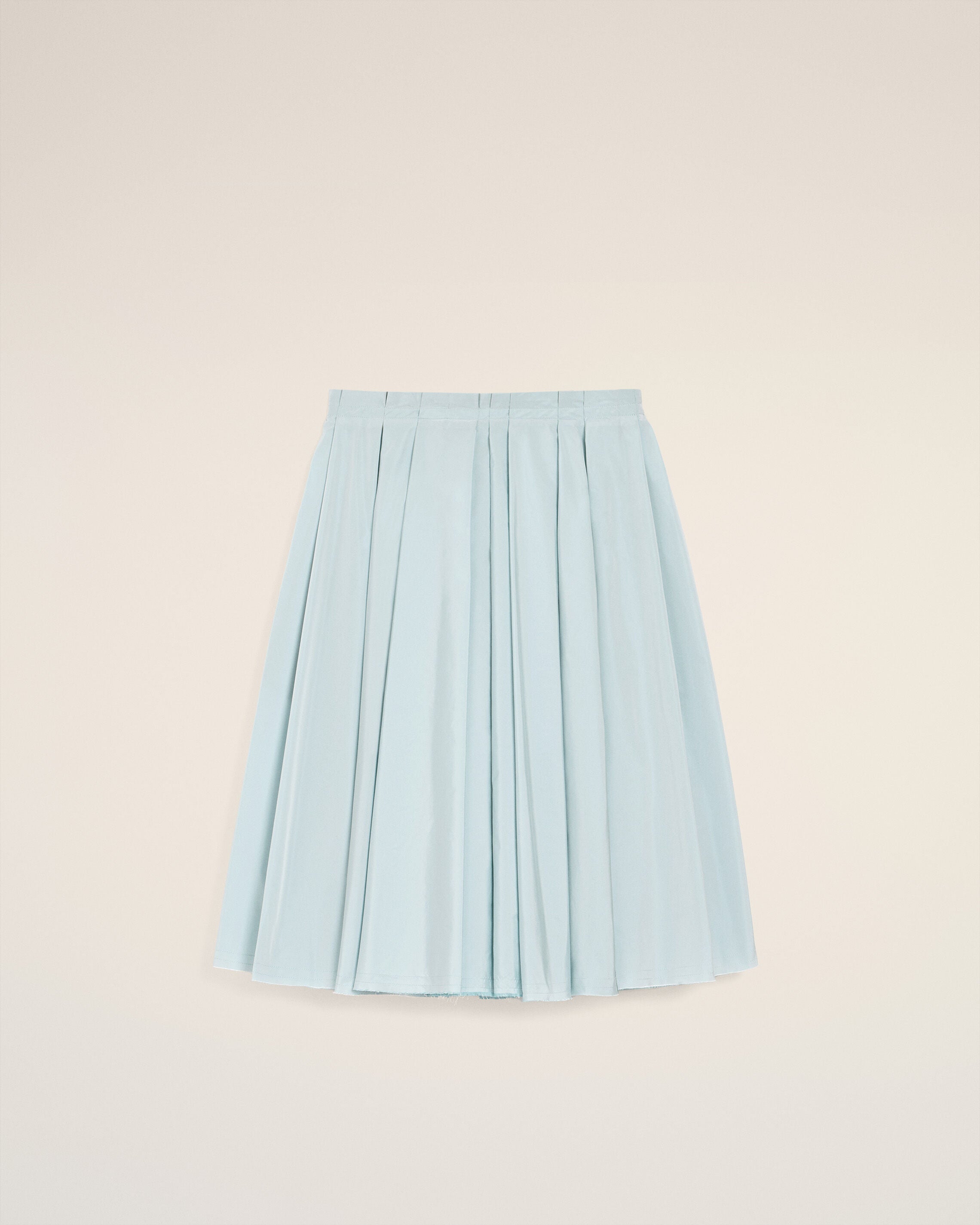 Gonna midi con stampa a fiori blu e dettaglio con taglio a vivo