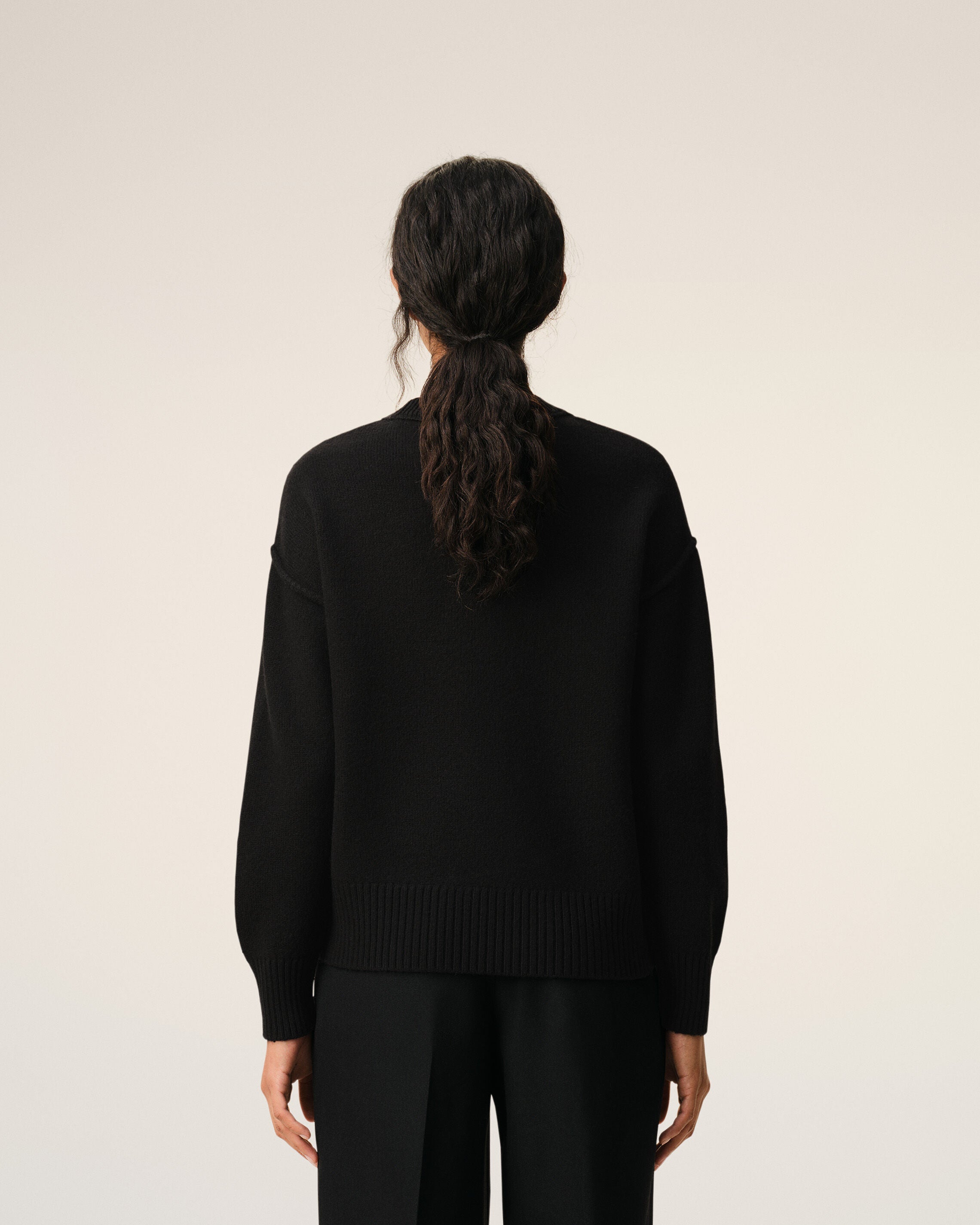 こちらはRWS認証を受けた商品です。RWS(レスポンシブル・ウール・スタンダード)は、原料となるウールを提供する羊が環境に優しい牧草地で飼育され、且つ倫理的に扱われていることを認定する国際基準です。この認証システムは、原料の収穫から製造に至るまで、環境への影響に配慮した社会的に責任のある取り組みを評価するものです。 Ami Paris 認証番号:233422