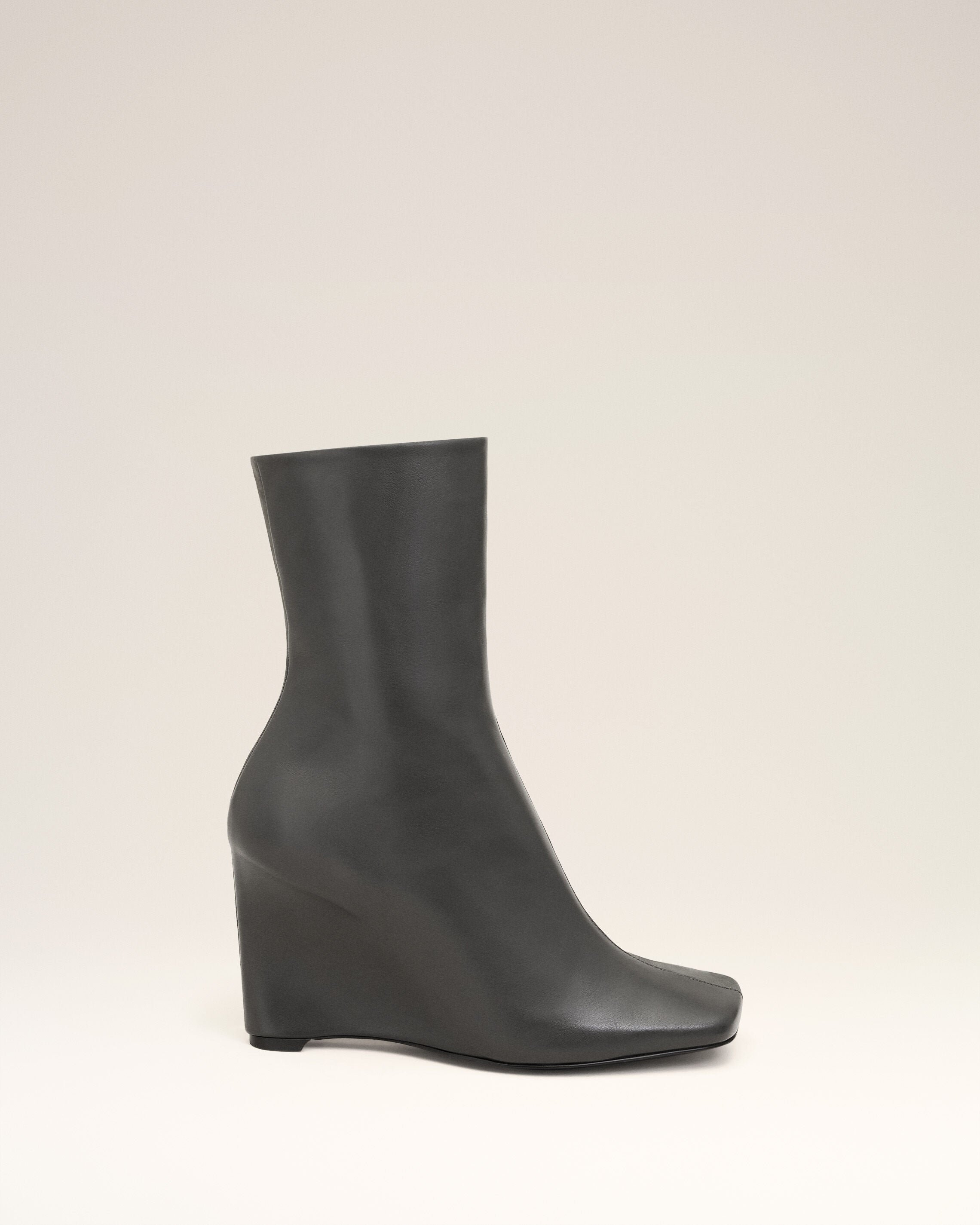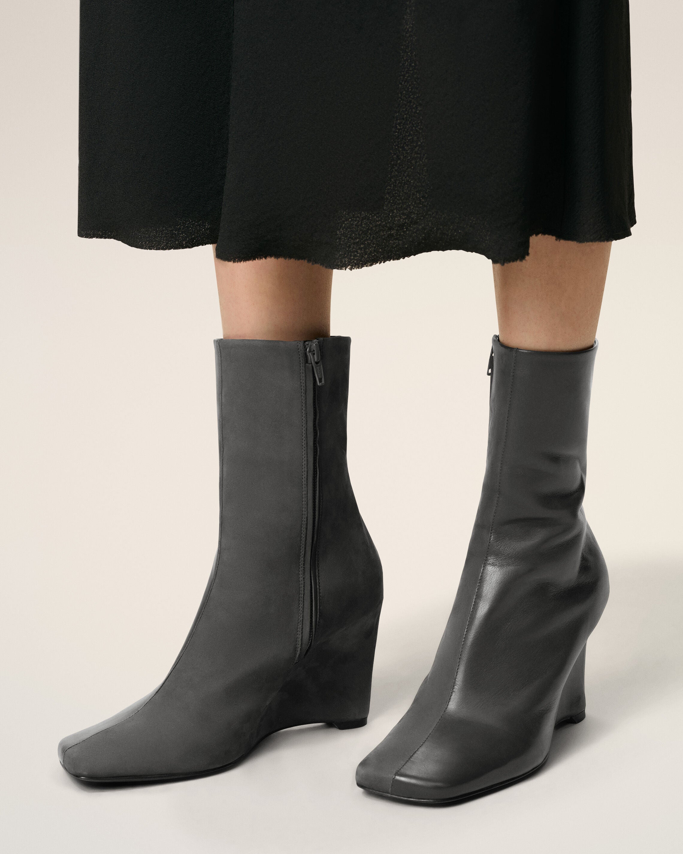 Bottines compensées bicolore en cuir lisse satiné et nubuck.