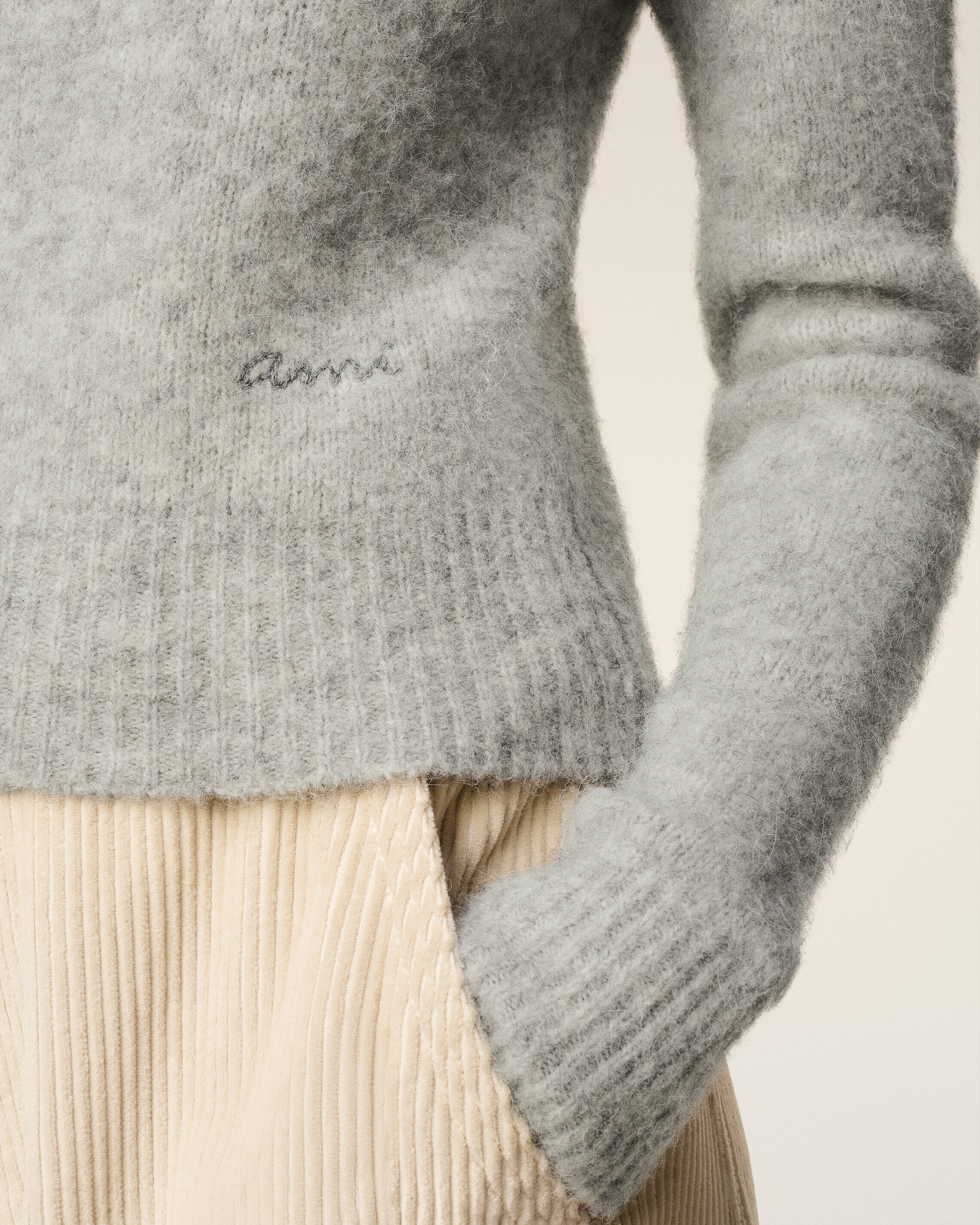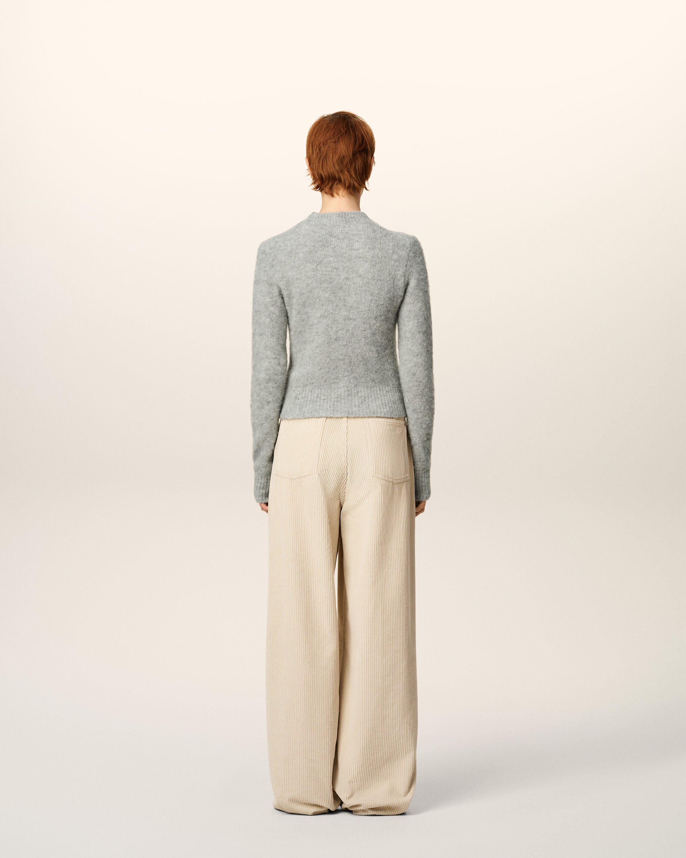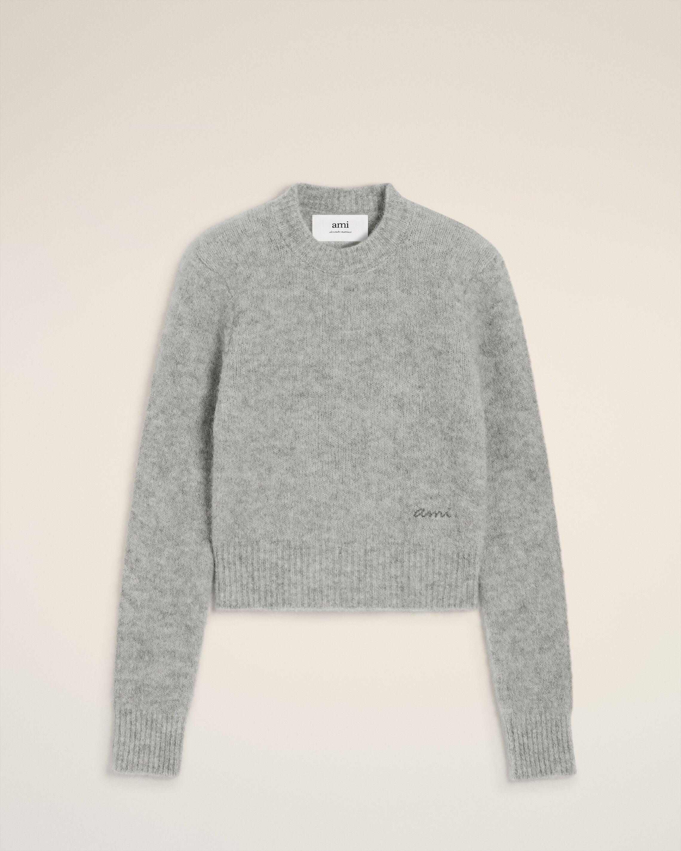 Pull Gris Col Rond En Alpaga